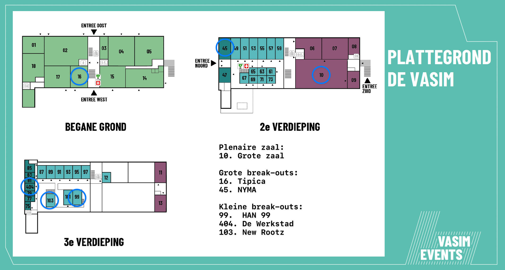Hier zie je de plattegrond van de locatie, inclusief de ruimtes die voor het congres gebruikt worden.